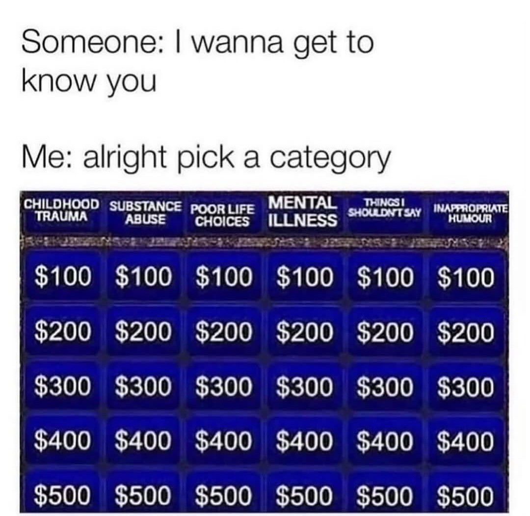 minus-squareObjectivityIncarnate@lemmy.worldlinkfedilinkarrow-up1·8 days agoIs “never learning how to set vertical alignment” one of the spaces under “poor life choices”? /s