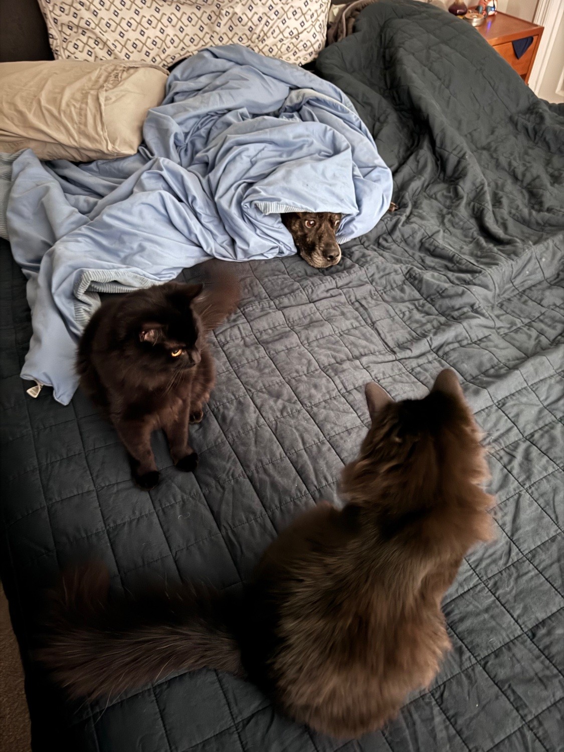 Kill Doug … kill the other cat … kill the two legged beast that invades this space during the day.