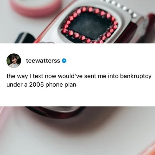 that was so shitty. and we only had like…600 minutes to share among 6 people and we were paying over $800 a month for the whole plan. Back then you could feed a whole family at a fast food restaurant for like $6