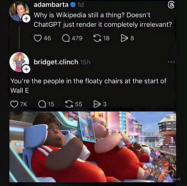I can’t tell you how many times the AI summary on google is just a cut and past of one of the top responses which is also often Wikipedia.