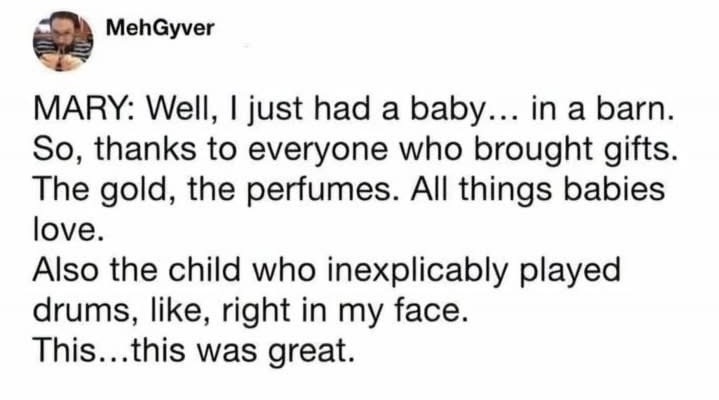 Joseph: … yeah Mary … immaculate conception … sure … I’ll be home late … gotta fill out that census … still gotta list myself as the “father”