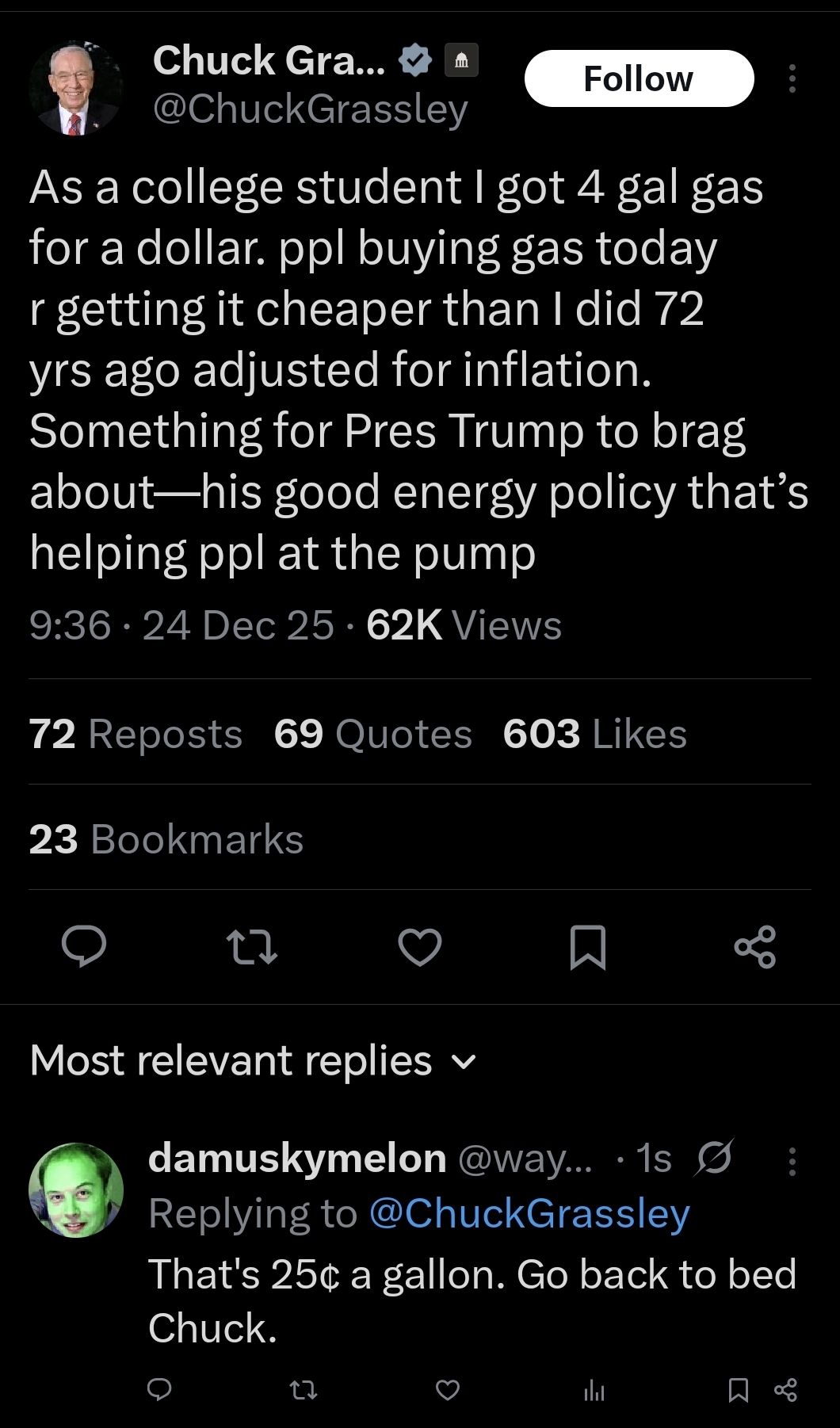 minus-squareAviandelight @mander.xyzlinkfedilinkarrow-up1·7 days agoI managed to get gas for $2.31 on Tuesday. It was a Christmas miracle.