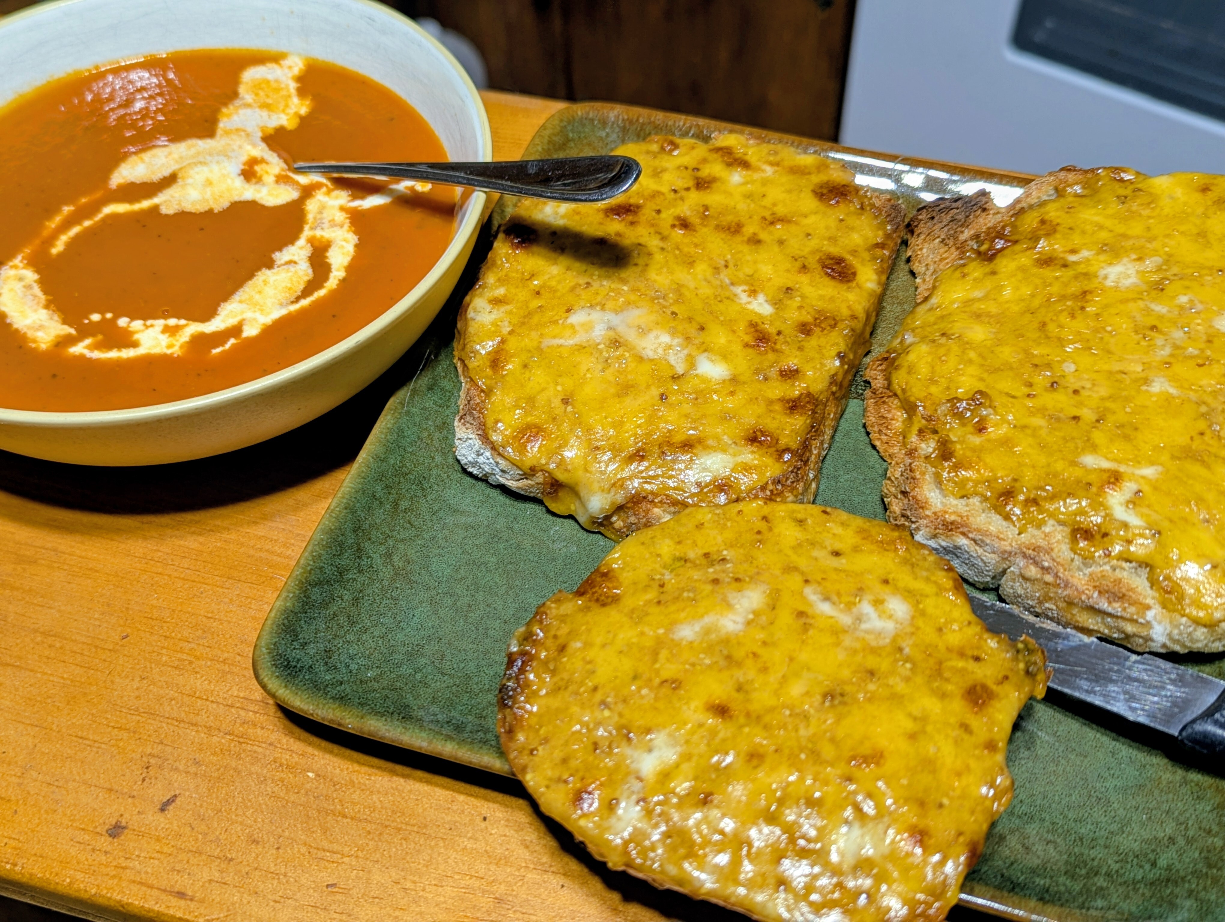 For the tomato soup, consider adding leeks and a goat milk or Pantysgawn (soft goat cheese) and Coriander (Cilantro) topper… assuming you wanna keep it traditionally Welsh.