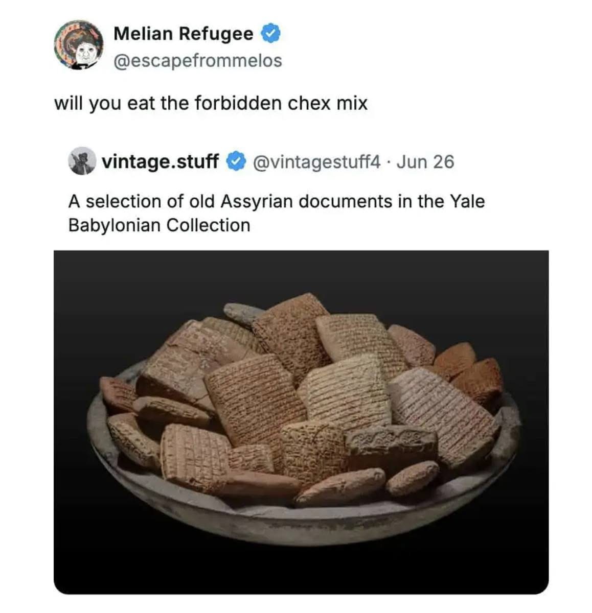 minus-squarestarik@lemmy.ziplinkfedilinkarrow-up44·5 days ago“How should we display these priceless ancient clay tablets?” “Just throw them in that bowl over there.”