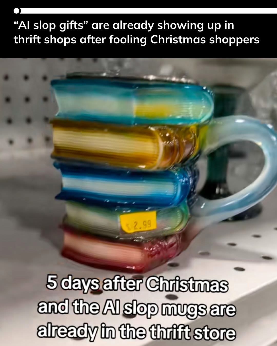 ickplant@lemmy.world to Fuck AI@lemmy.world · 5 days agoAI slop mugs hitting the thrift store shelveslemmy.worldimagemessage-square27fedilinkarrow-up1234arrow-down12