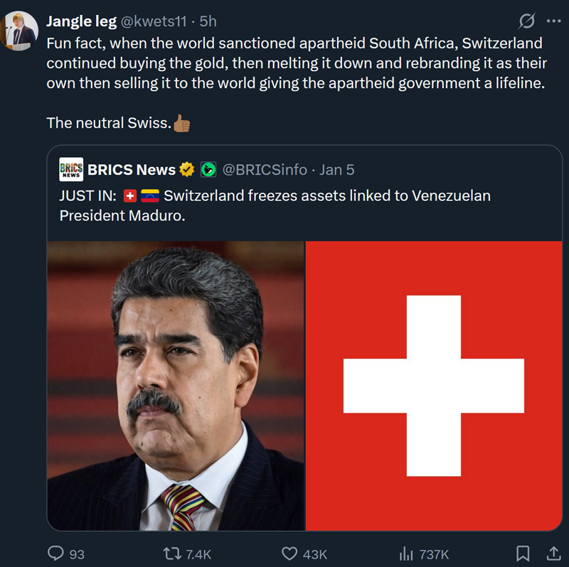 minus-squareN0t_5ure@lemmy.worldlinkfedilinkarrow-up16·3 days agoThe most neutral country money can buy.