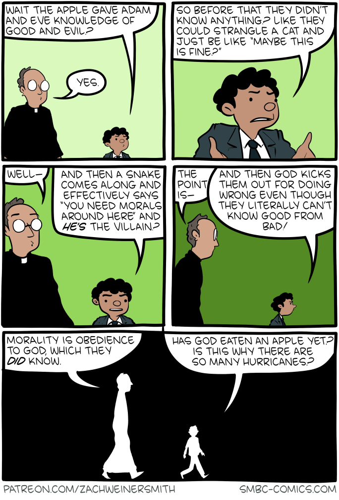 And god, ostensibly being omniscient, put all of that into effect all while already knowing 100% that they were going to eat the fruit. It’s not really “giving them a chance” when you already know perfectly well what they’re going to do, now is it?