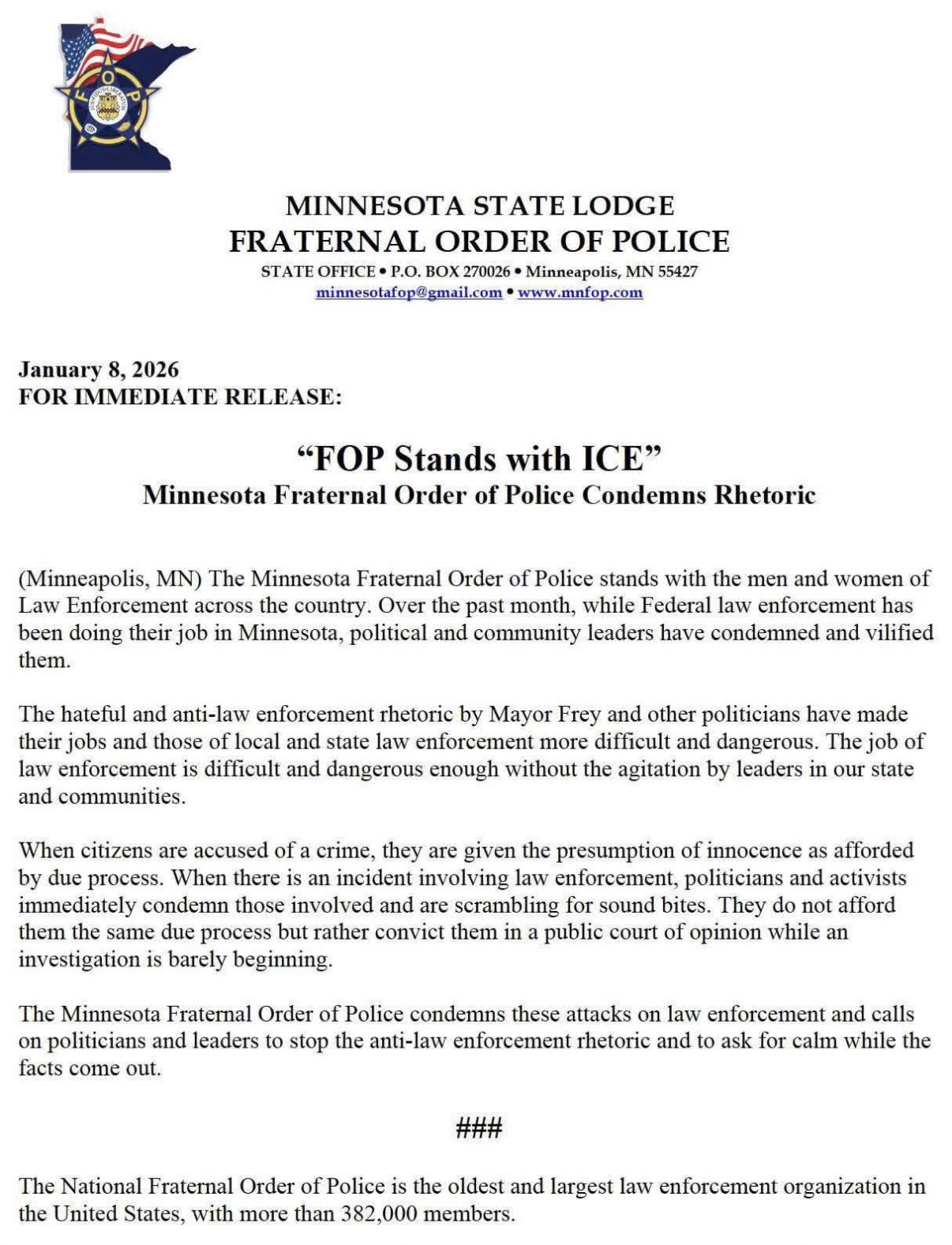 The Minnesota Fraternal Order of Police folks apparently are blind or totally corrupt because the videos show one of their own executing a citizen in broad daylight with many witnesses present. Their response is to lie like criminals.
