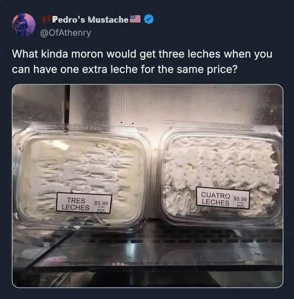 Well, maybe the lactose intolerant would skip the last leche. One leche too far?