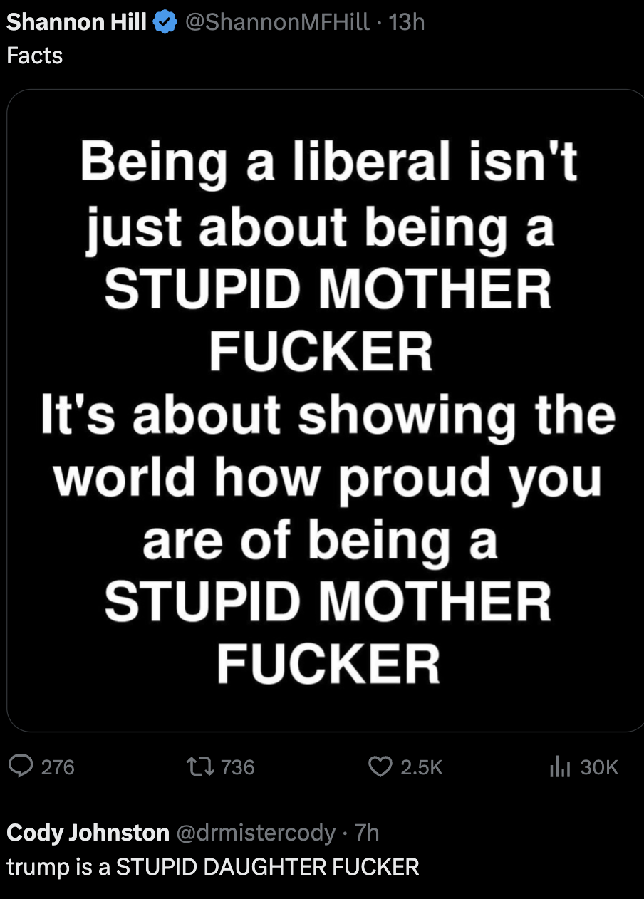 minus-squareSharkticon@lemmy.ziplinkfedilinkEnglisharrow-up3·edit-21 day agoDoesn’t matter what you call yourself fascists are going to call you things anyway. Probably should not concern yourself so much with what they think. The only thing they’re good for is decorating the eaves of gas stations.
