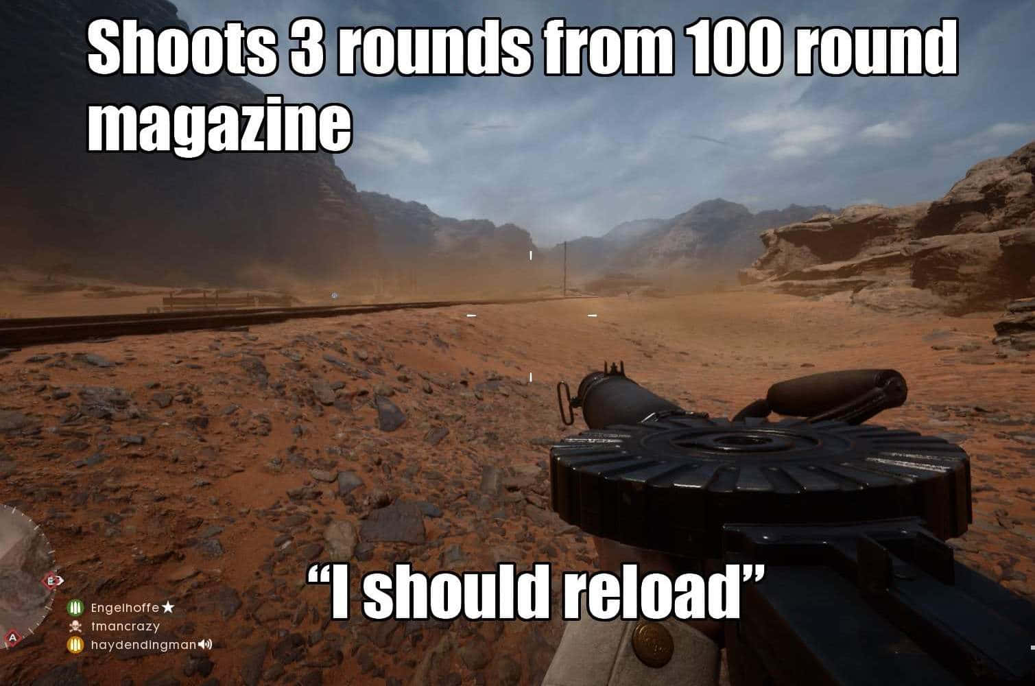 minus-squareJesus_666@lemmy.worldlinkfedilinkEnglisharrow-up8·5 days ago Shoot three rounds from the magazine Reload out of habit Remember too late that you’re playing Gaige in Borderlands 2 Profit Watch 400 anarchy stacks vanish