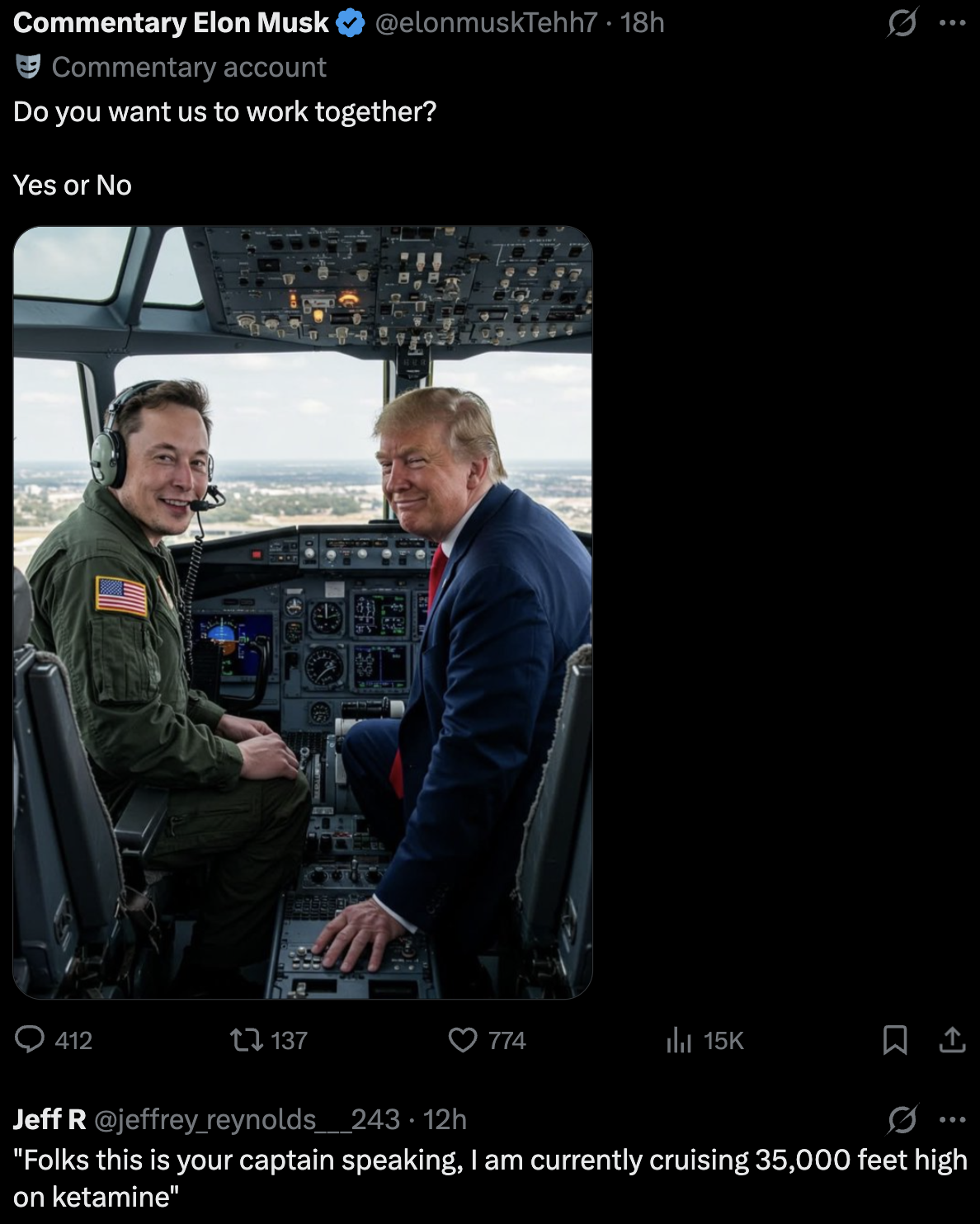 Sadly it’d never actually happen, because you just know that if Apartheid Pedo were actually behind the flight yoke with El Taco next to him that plane would fly straight into the ground.