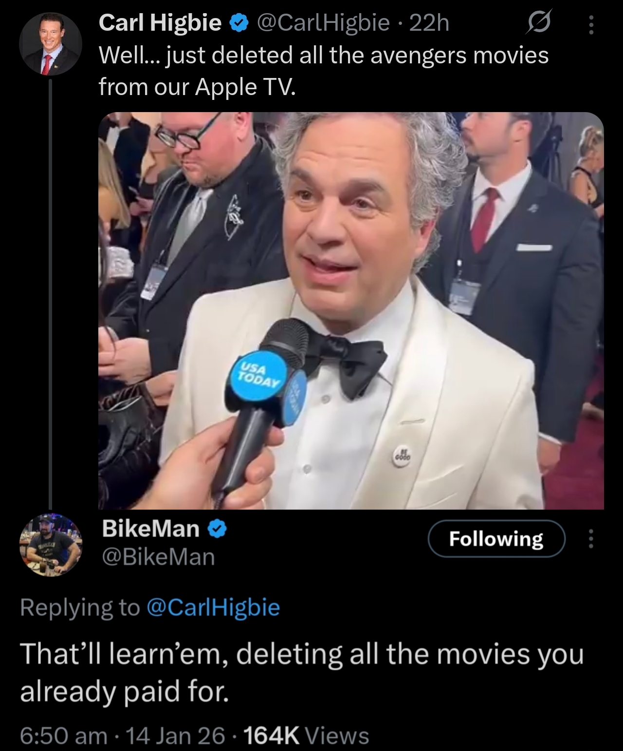 Extra stupid because Ruffalo’s been out and about publicly supporting candidates like Bernie for like 10+ years now and the only reason this goober’s upset cause they’re just now finding out about it.