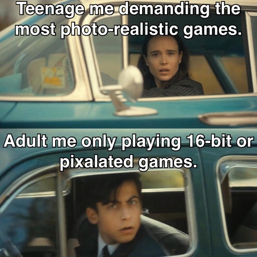 I wanted photo realistic games when I was younger, and now I get to enjoy playing them. I also enjoy playing 2d games. It turns out fidelity is just an artistic choice which does little to predict the quality of a game 🙄