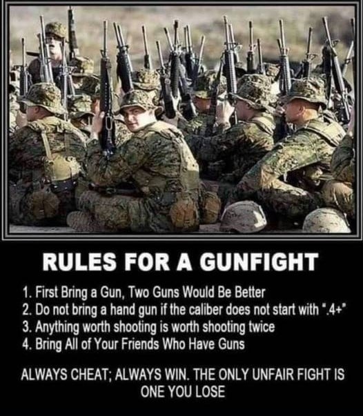 TBF it does say ‘rules for a gunfight’ and not ‘rules for a duck hunt’. If the duck is part of an armed offensive, and possibly wearing body armor, I think a double tap is appropriate.