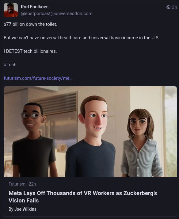minus-squareRagingRobot@lemmy.worldlinkfedilinkEnglisharrow-up3·1 day agoWould you take universal healthcare provided by Facebook, but they get to keep all your medical data?