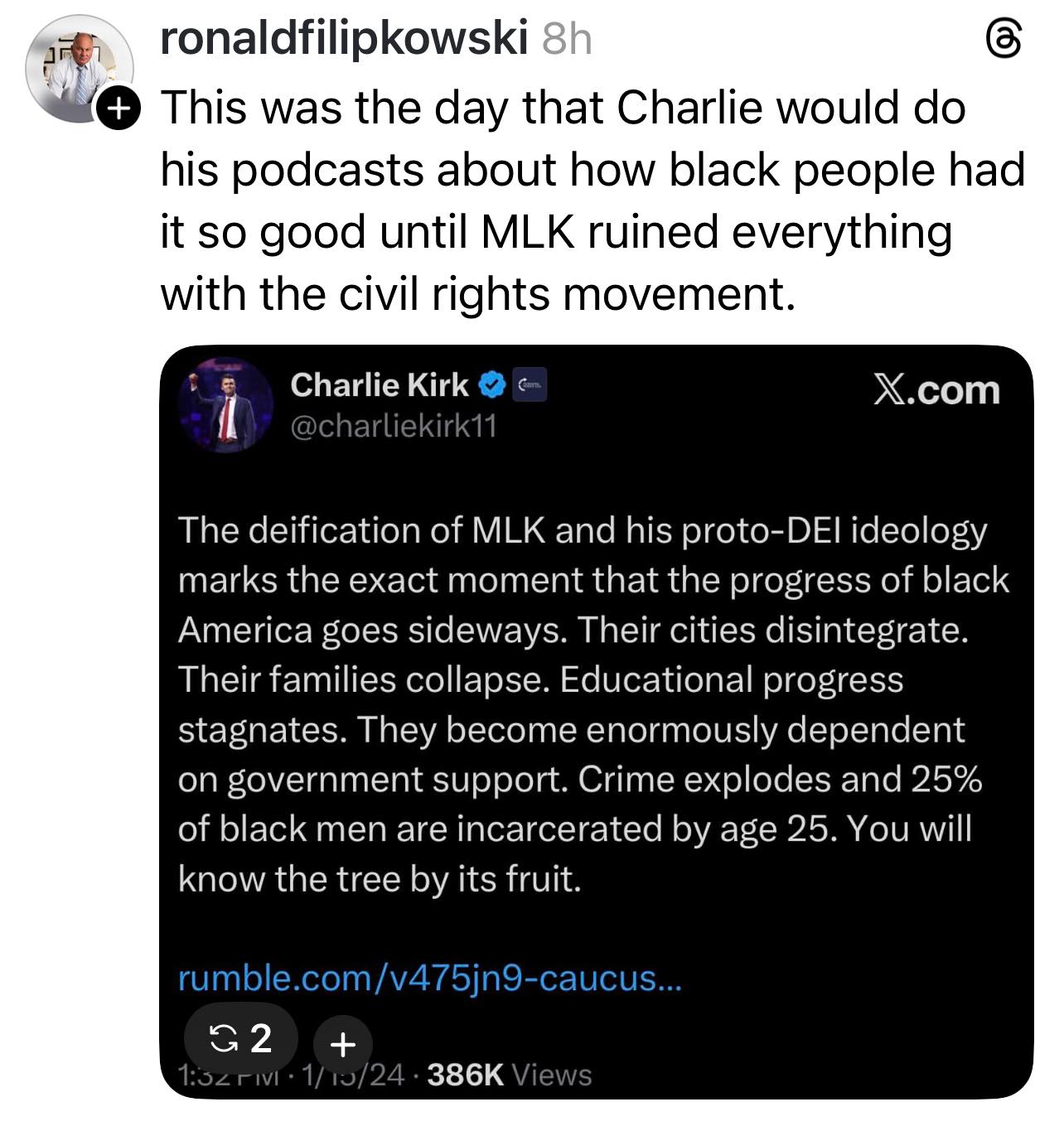 Yes I’m sure the racist over-policing was due to MLK giving orders from beyond the grave rather than racists doinh racist things. (/s)