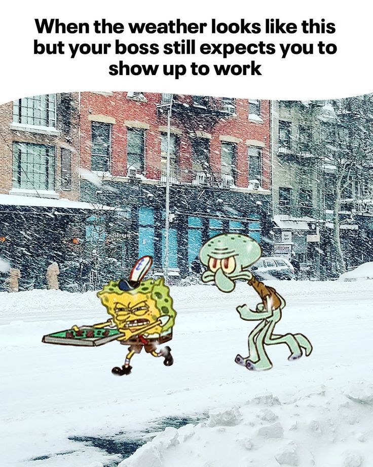 Ironically I think bringing someone a Krusty Krab Pizza is one of the better reasons to go out into such weather.