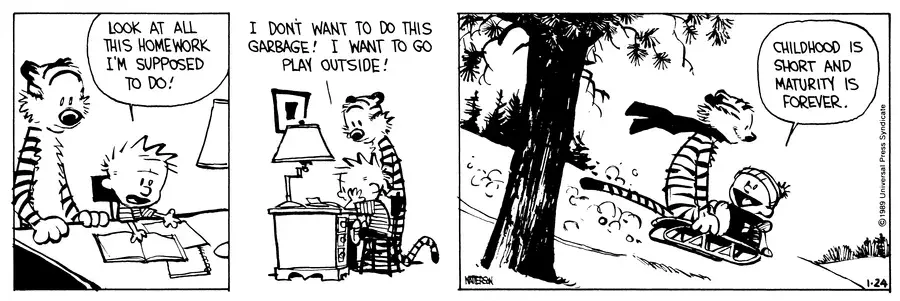 In Calvin’s place, playing while it’s still light out makes sense. It’s much harder and colder to play at night in the dark. Do the homework when it’s dark. The only risk is that he doesn’t leave enough time to finish the homework.