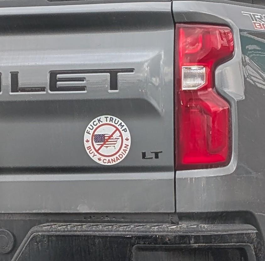 I mean it’s a car located in Canada, with a Canadian saying don’t buy American. The car itself doesn’t mean anything to me. We could imagine that the driver bought the car oblivious to its American origin, but it’s not what came to mind in my case. I just thought fuck yeah where can I get that sticker for MY Chevy, and; is it printed in the USA? (Wouldn’t put it past those cocksucking leaches)