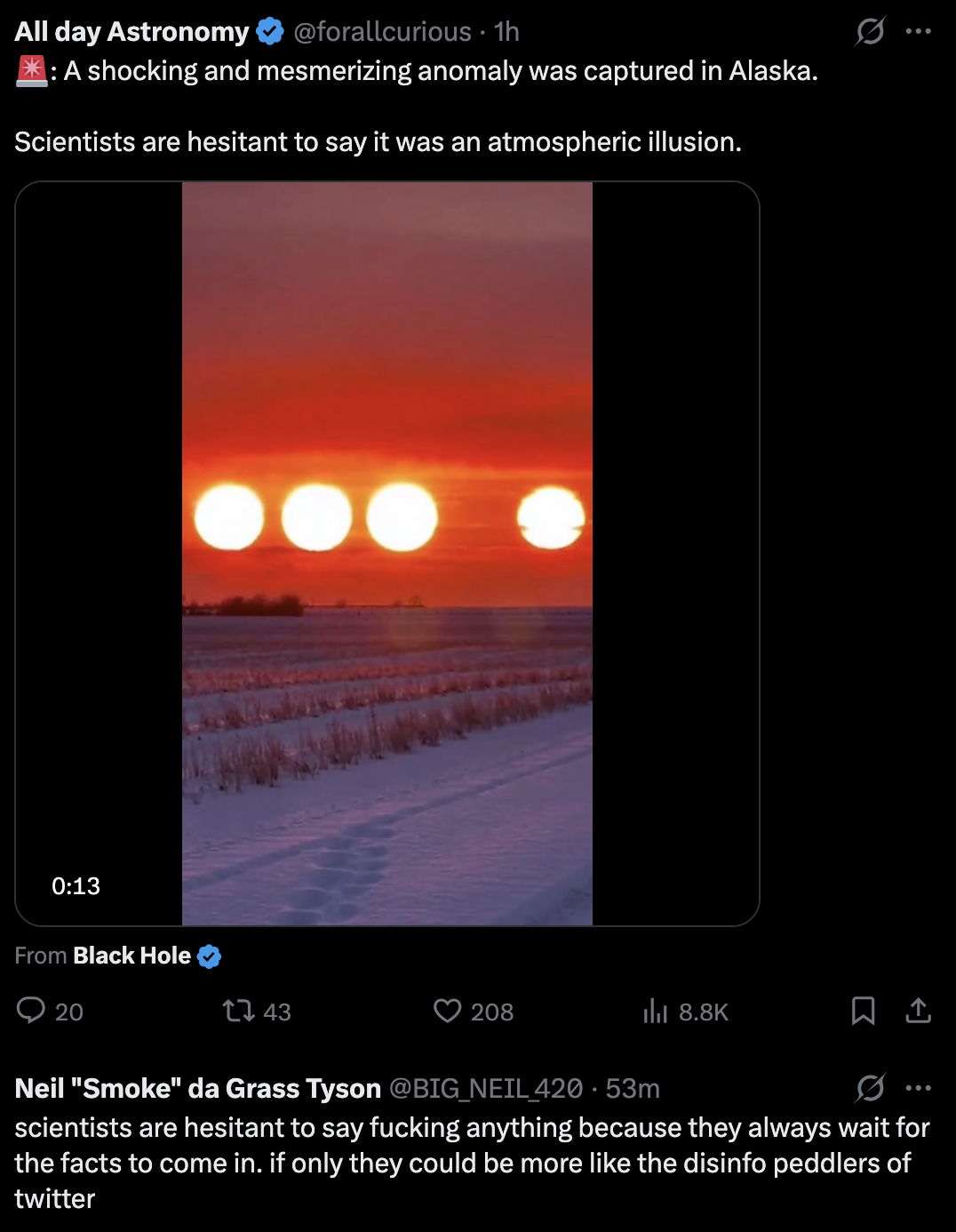 I found a few sources saying it’s an extreme example of a sun dog, and a video, which I suppose could be AI. Another, mentioning two whole suns in Russia.