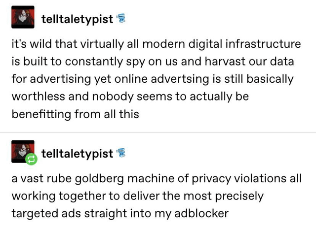 I mean I think that it does work on most people. I have a few people in my life who just don’t block ads. Some of them do not even change their radio frequency when ads play through it. They think that they can choose for it to not affect them, but that’s not really how propaganda works.