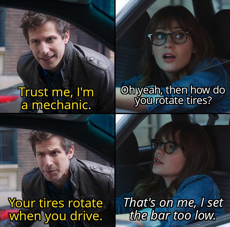 If you rotate your tires, don’t forget to get your wheels rebalanced at the same time! So many places, usually quick oil change places, will offer a tire rotation service but WONT rebalance them and then you’ll drive off and wonder why your car is so shaky.