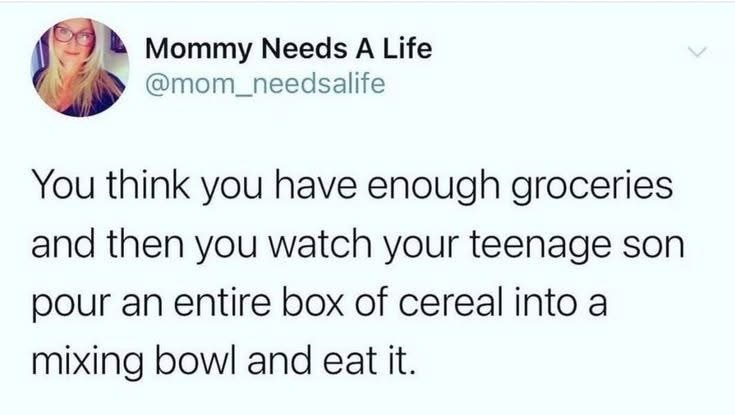 No, it’s because teenage boys eat a lot