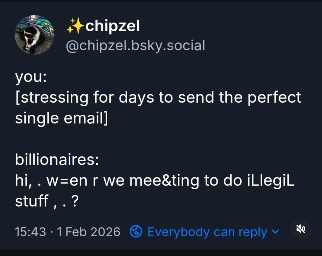 fireweed@lemmy.world to Political Memes@lemmy.world · 3 days agoReading the Files got me likelemmy.worldimagemessage-square55fedilinkarrow-up1934arrow-down14