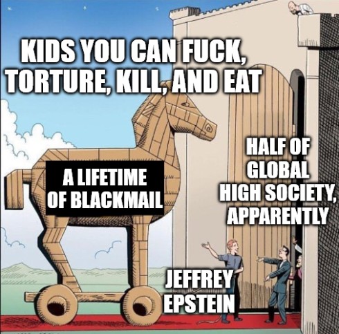 edit: also, Epstein helped launch 4Chan’s politics board, which was one of the primary drivers of the entire Qanon/democrats eating-babies and blood rituals narrative, I find that waaay too on-the-nose to be coincidental.