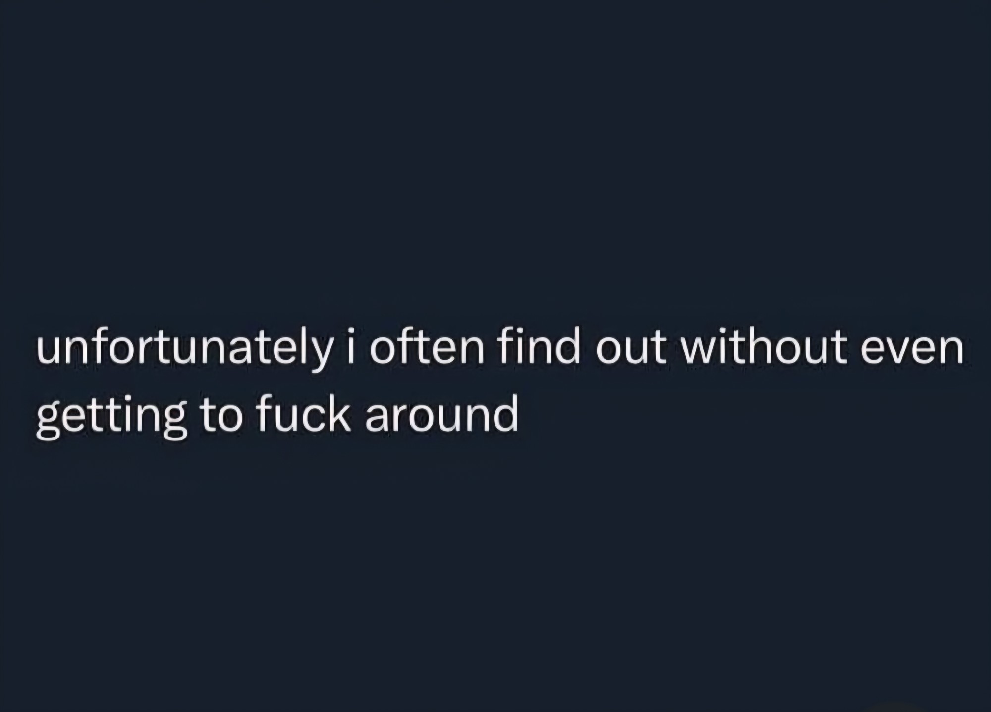 “It is possible to not fuck around at all and still find out. That is not a weakness, that is life.” --Jean-Luc Picard (Paraphrased)