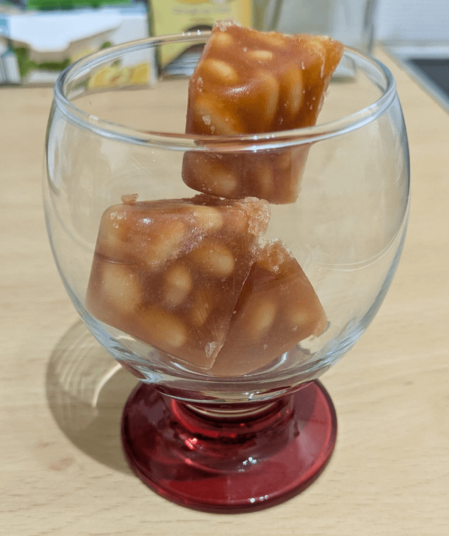 Light brown legumes suspended in a crystaline structure? Basically the same thing.