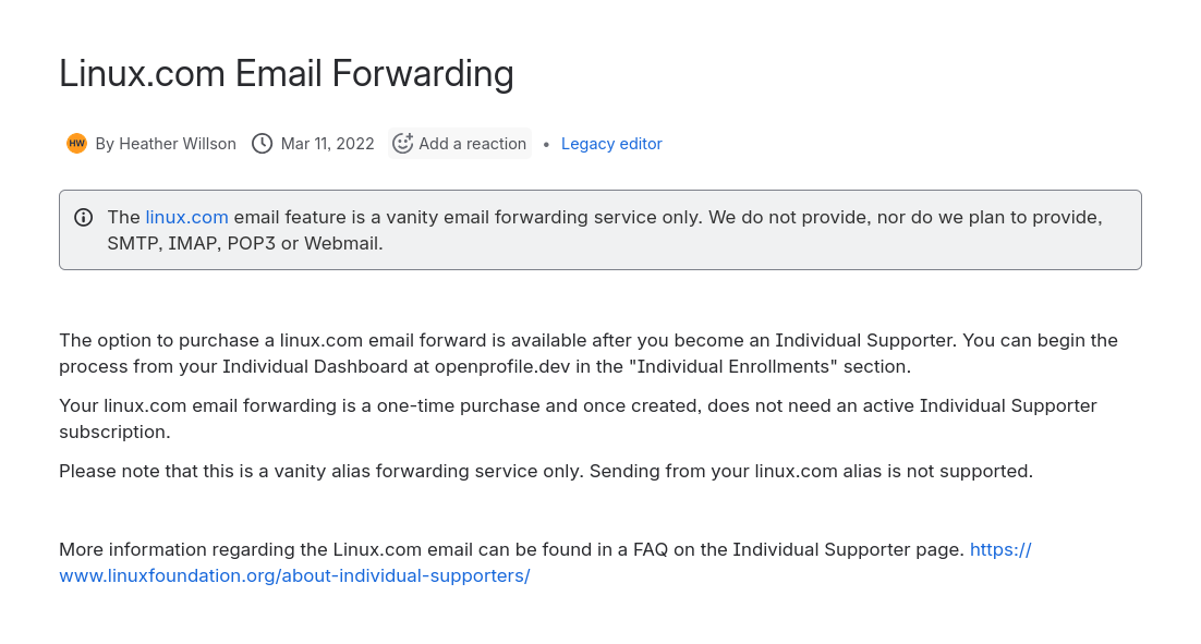 you should check with linux.com (?) how serious they are about it(edit: according to the screenshot above, not very), if you want to use this seriously.I do this with @duck.com except it’s free, strips trackers where possible, and supports generating any number of alias addresses that can be disabled. For those who don’t want to spend $250 but still want forwarding security
