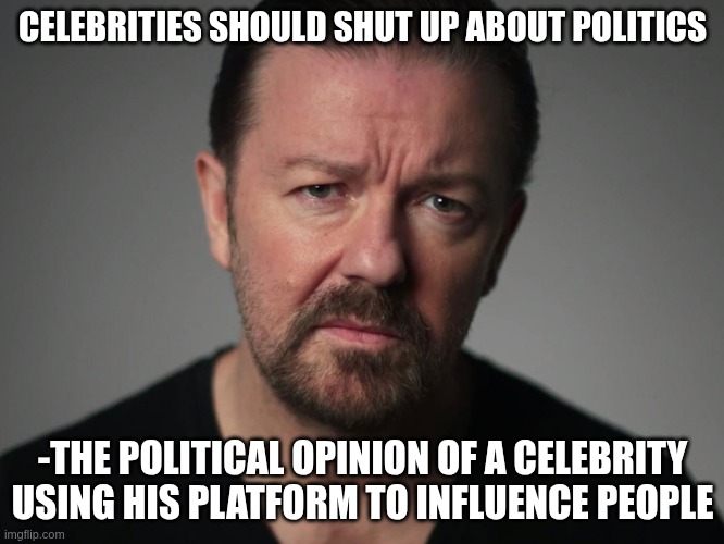 It’s not even that celerities have opinions on politics. Everyone does. It’s that far too many people believe celebrities to be some sort of authority on the subject and give their political opinions value over critical thinking.
