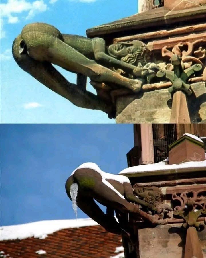 More info: https://www.atlasobscura.com/places/mooning-gargoyle-of-freiburg-minster