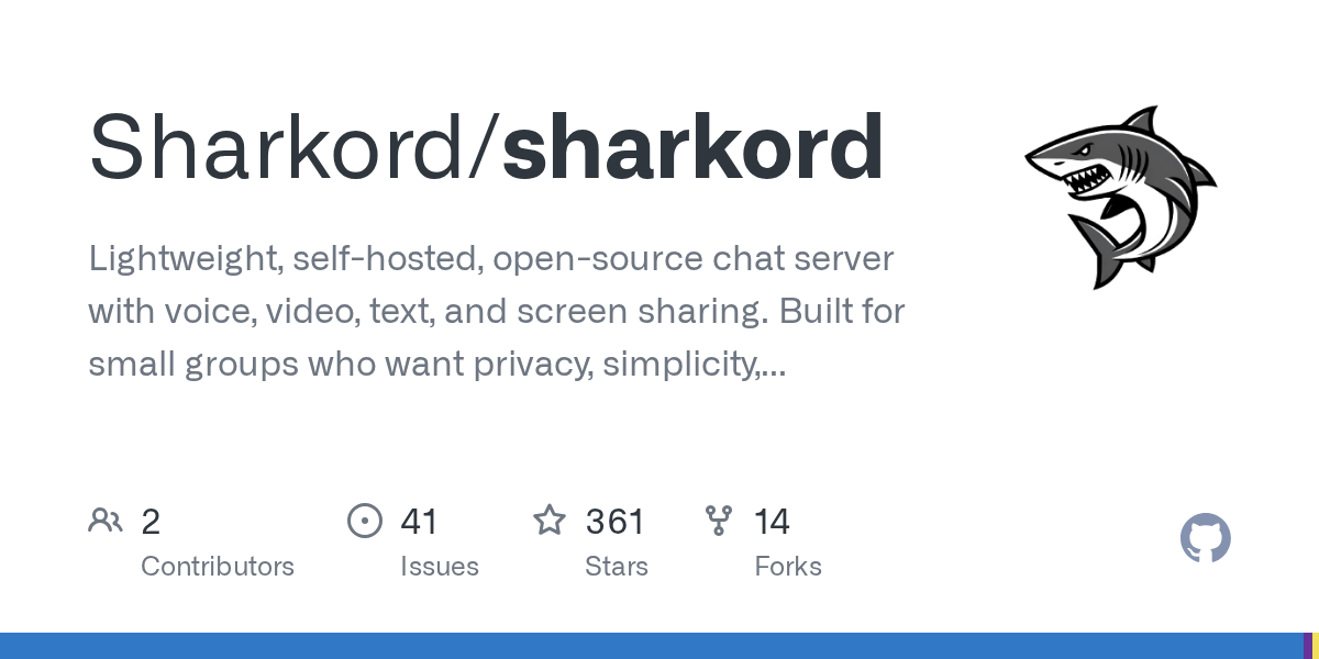 .gitignorefile and this was built by a single person in about 4 months) A bunch of security issues have already been opened.https://github.com/Sharkord/sharkord/issues/86 This one seems pretty bad.