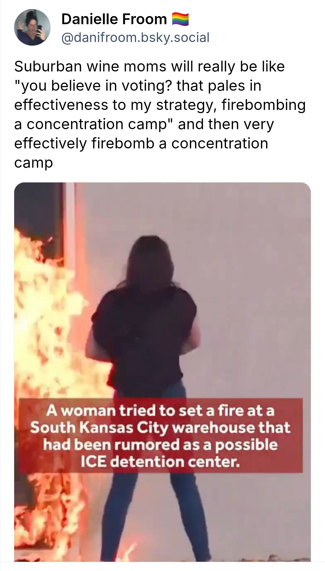 Going out on a limb here to say that’s it’s a really bad idea to set fire to a building where people are locked in and unable to leave.