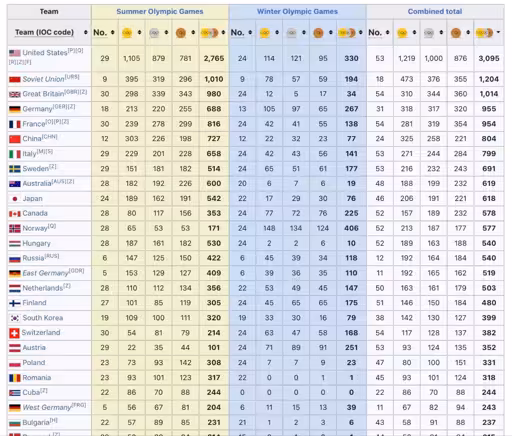 Tolc@lemmy.zip to Today I Learned@lemmy.worldEnglish · 21 days agoToday I learned that despite its dissolution almost 35 years ago, Soviet Union is still #2 on overall Olympic medals won tally. They won 1204 medals in 39 yearslocklemmy.zipexternal-linkmessage-square70linkfedilinkarrow-up1132arrow-down142