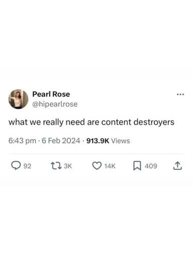 arrow-up1760arrow-down1imagetoo many creators not enough destroyerslemmy.todayviolet08@lemmy.today to Lemmy Shitpost@lemmy.world · 5 days agomessage-square28linkfedilink