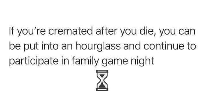 minus-squarePapaStevesy@midwest.sociallinkfedilinkEnglisharrow-up0·2 years agoWhat if I get cremated before I die?