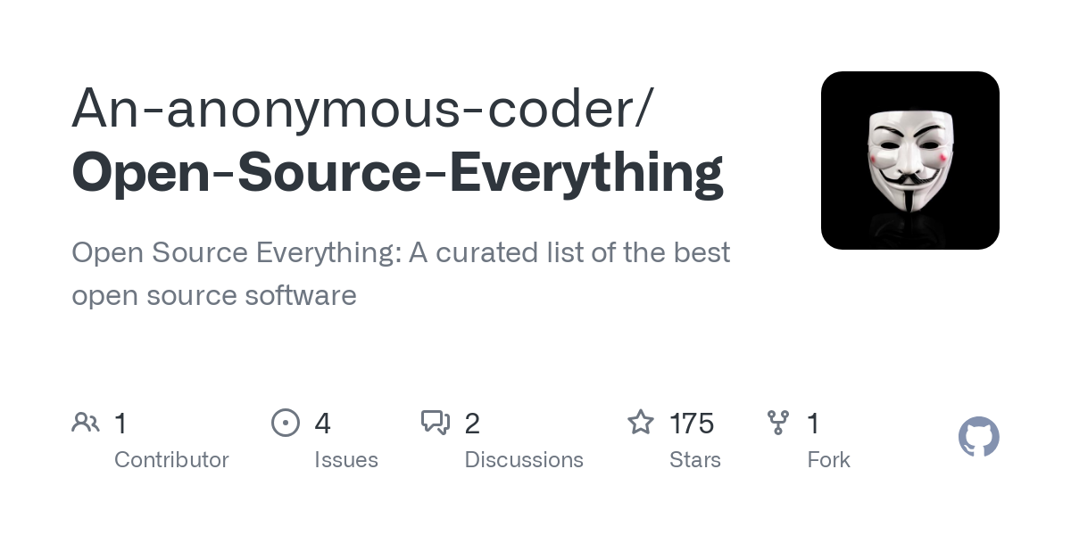 P.S. Open Source Everything is hosted on GitLab, and mirrored on GitHub. I’m linking to the GitHub version because it supports slightly better formatting and header links are broken on GitLab due to a bug.