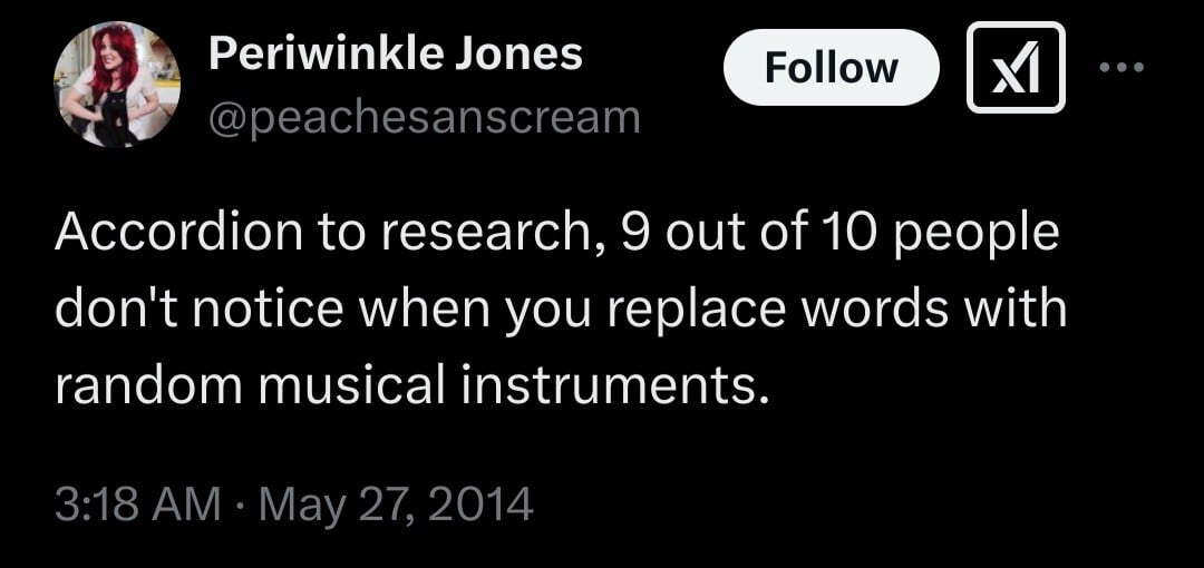AuADHD reporting in. I got caught re-reading the first part for a while trying to figure out what neat thing about free-reed instruments was going on, before eventually reading to the end and realizing that its presence was the joke.