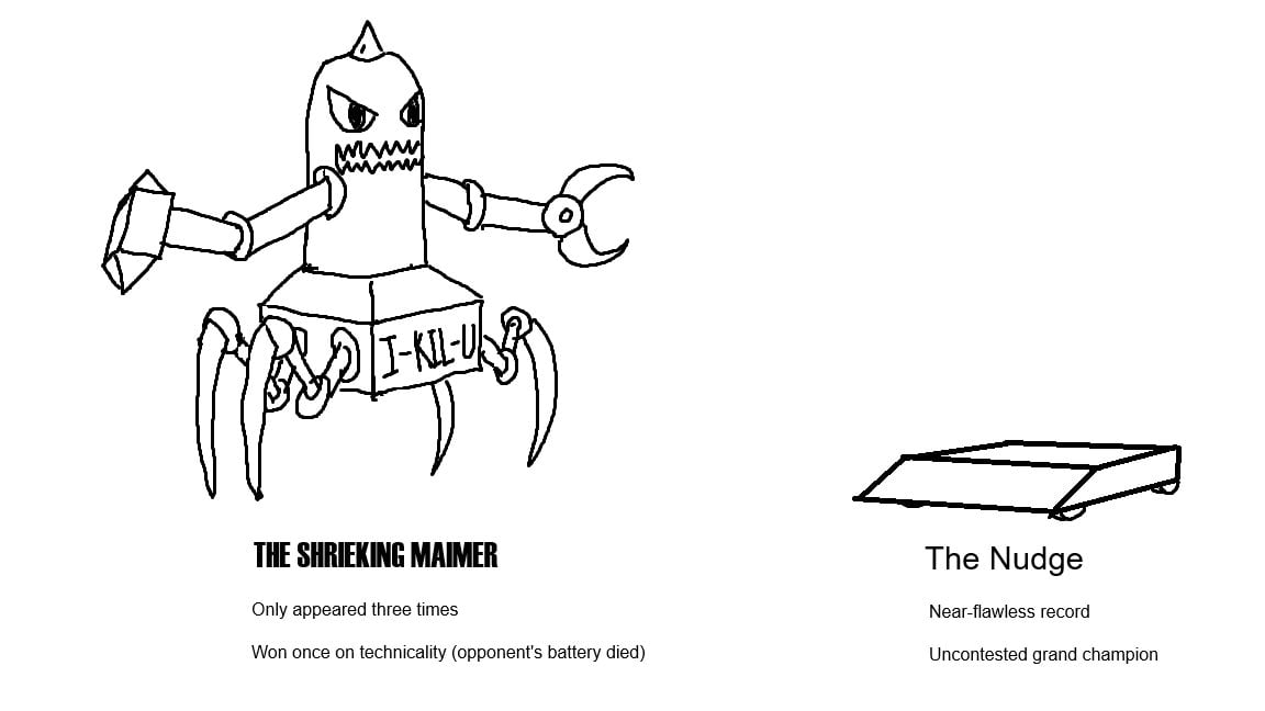 The rules of battlebots lend themselves to wedge bots, unfortunately. Can’t shoot, tangle, or electrocute, for example.