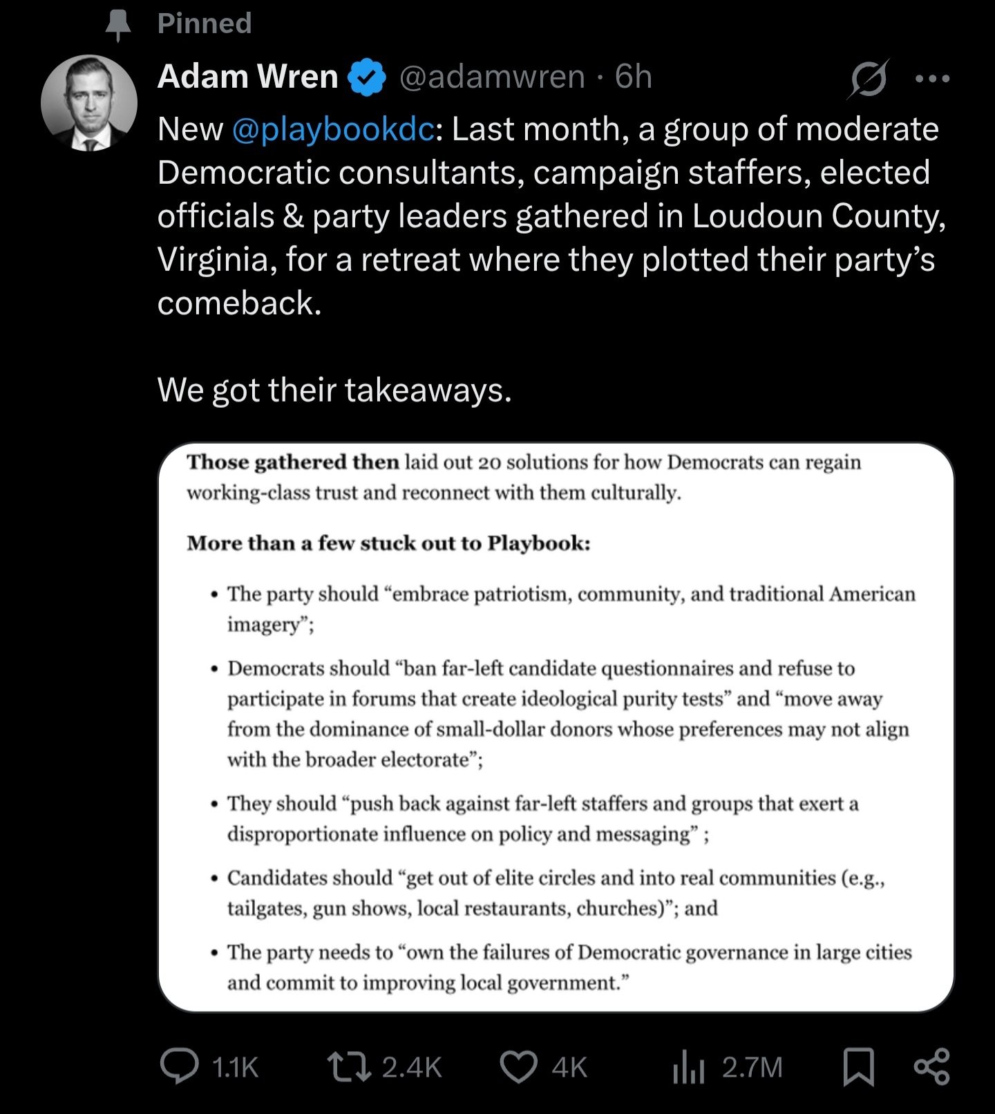 They seem to think the way to win the working class is to go more MAGA-like (anti-woke social democracy) instead of trying a competing strategy like inclusive populism. It also looks like they’re choosing not to break from elite capture, which seems like a huge mistake.