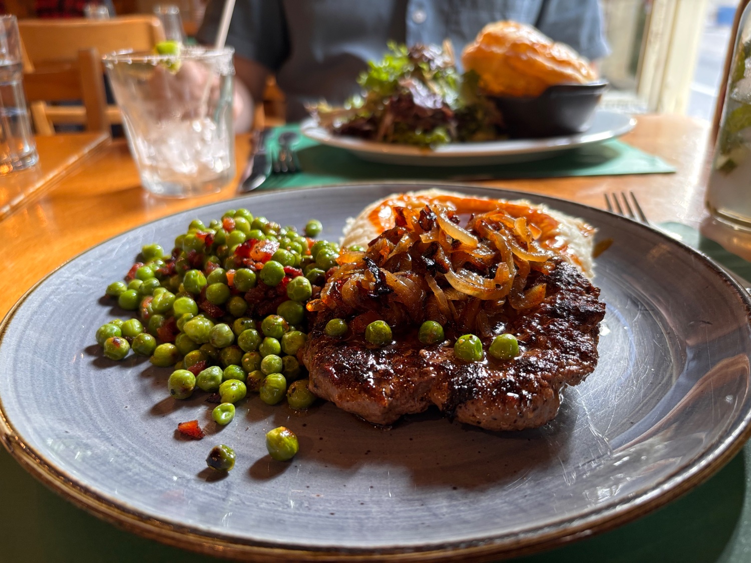 Oh my goodness I would gobble that plate up. All things that I like. Spatzle with something saucy, a little veg to make it a balanced meal. 👌