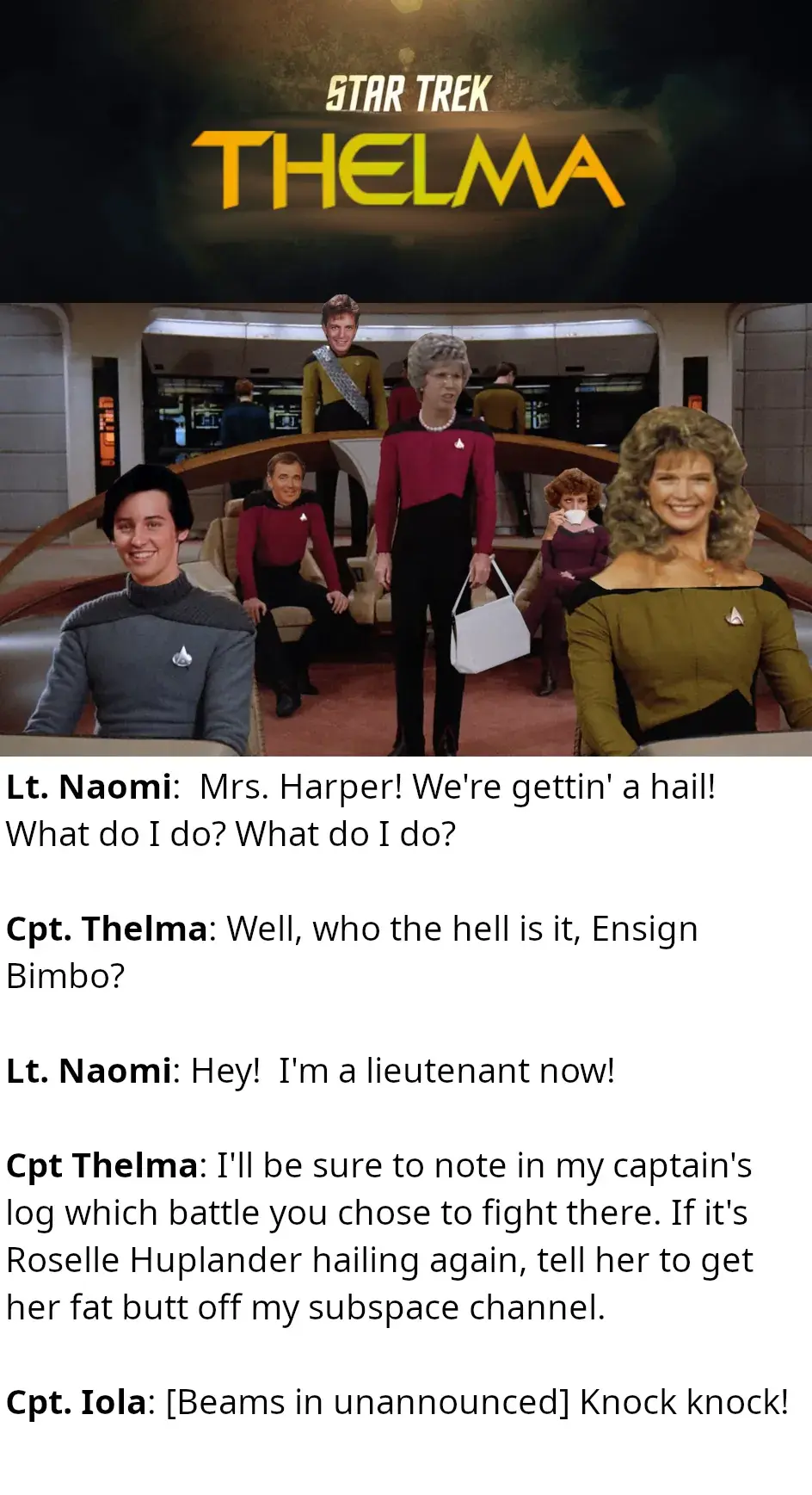 Mine is also from the “Born to be a Bureaucrat” song but it’s the “born to be all obsessive and snotty. I made my friends and relations fill long applications to get into my tenth birthday party” part.