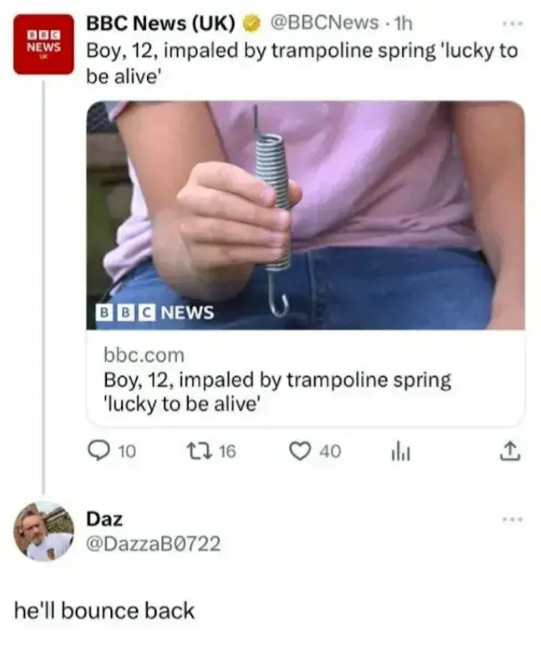 arrow-up10arrow-down1imageLucky to be alive? Come on now, thats a stretch. sopuli.xyzPinkyCoyote@sopuli.xyz to Lemmy Shitpost@lemmy.world · 1 year agomessage-square1fedilink