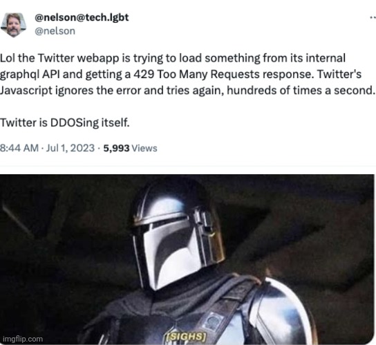 arrow-up11arrow-down1imageJuly first really finna be the end of the net huhlemmy.worldVamp@lemmy.world to Star Wars Memes@lemmy.worldEnglish · 3 years agomessage-square0fedilink