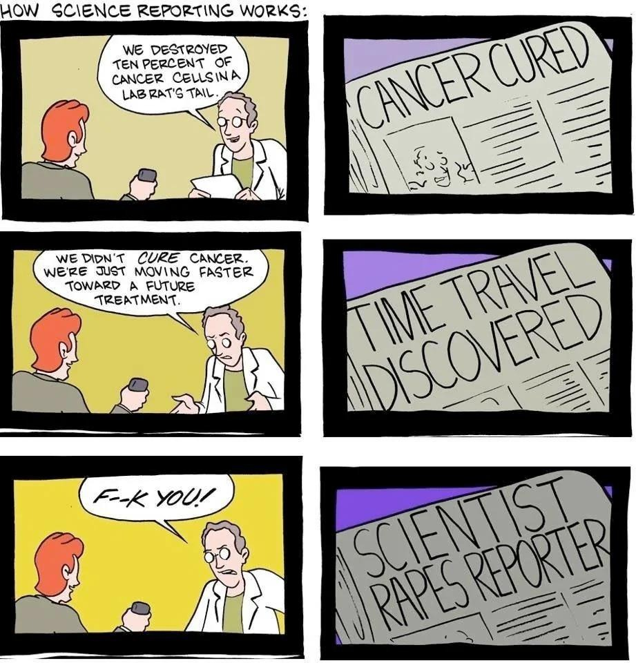 cm0002@infosec.pub to Funny@sh.itjust.works · 4 hours agoHow Science Reporting Worksinfosec.pubimagemessage-square3fedilinkarrow-up1147arrow-down13