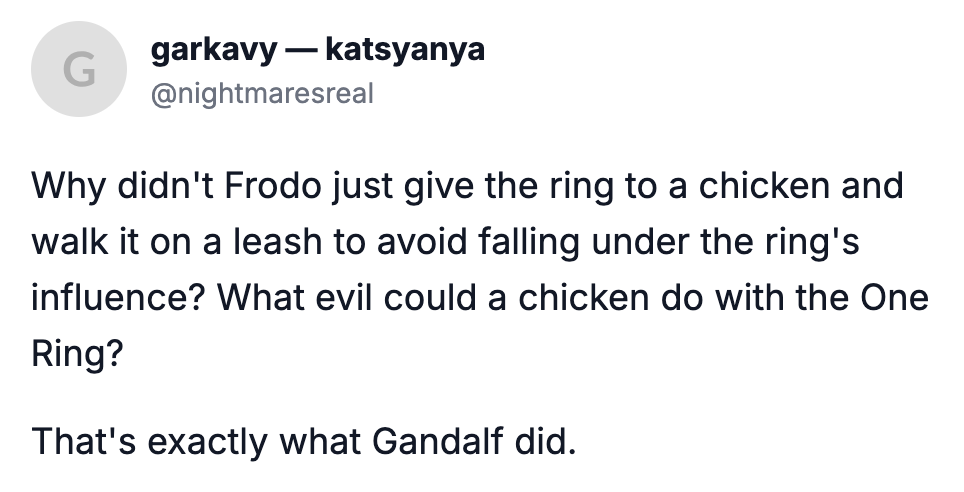 cm0002@mander.xyz to Funny@sh.itjust.works · 14 hours agoConsider the followinglemmy.mlimagemessage-square26fedilinkarrow-up1393arrow-down15